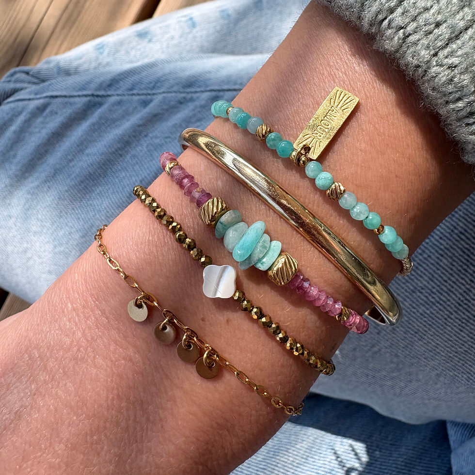 Un petit vent Rococo souffle sur la Dune... et ce n'est pas pour nous déplaire ! Très féminin, et irrésistible, avec ses perles de Quartz rose, ses perles d'eau douce... Portez le seul ou accordé avec ses partenaires, Pénélope et Sélène !